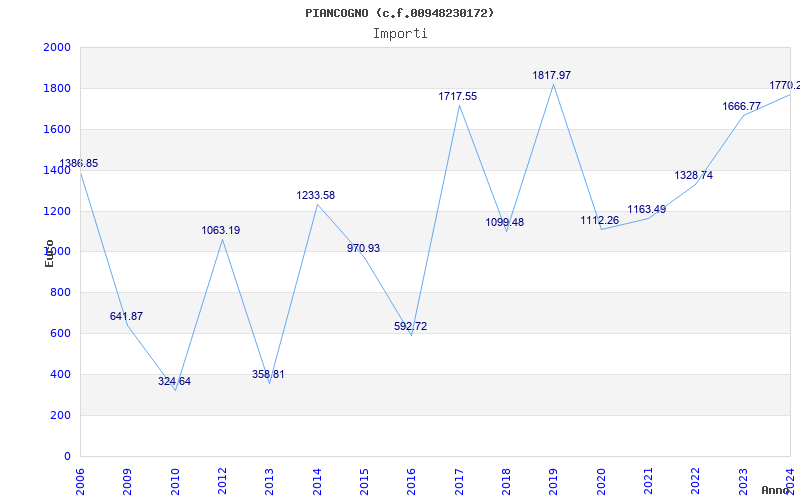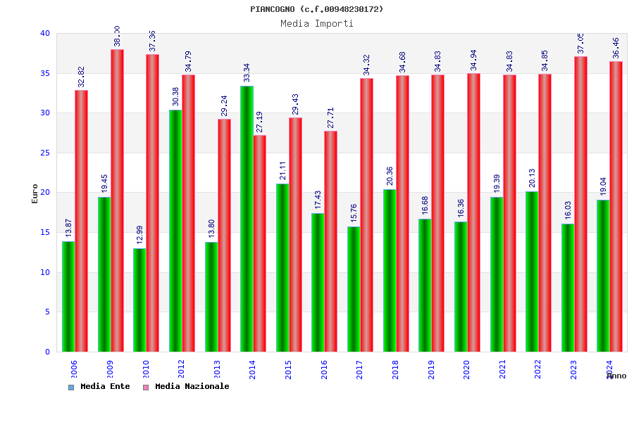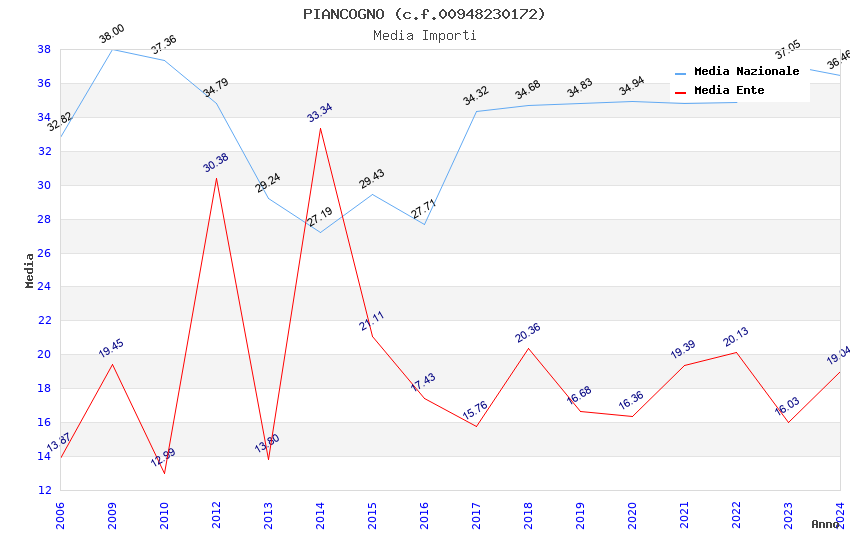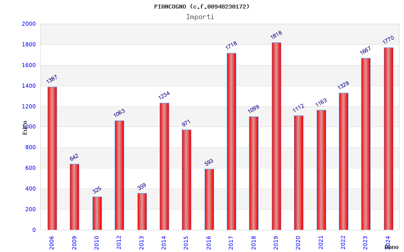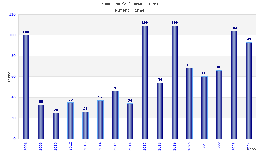 | Anno | Firme | Importi | Media | Naz. | Reg. | Prov. | Comu. |