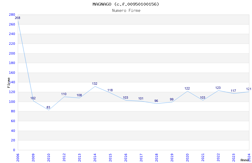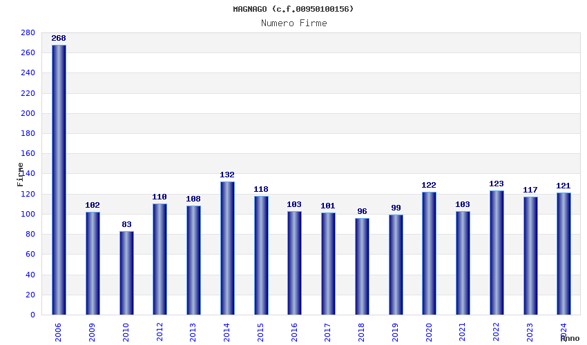 | Anno | Firme | Importi | Media | Naz. | Reg. | Prov. | Comu. |