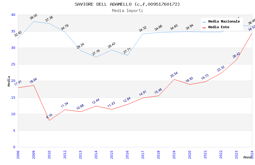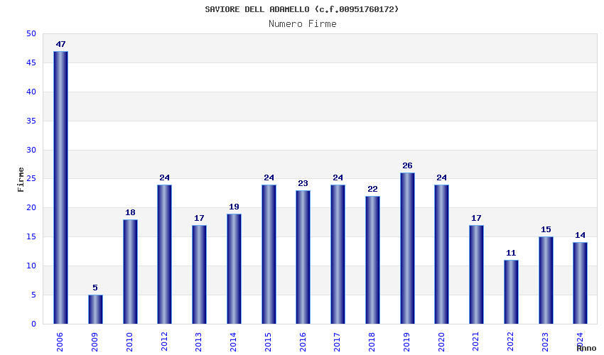 | Anno | Firme | Importi | Media | Naz. | Reg. | Prov. | Comu. |