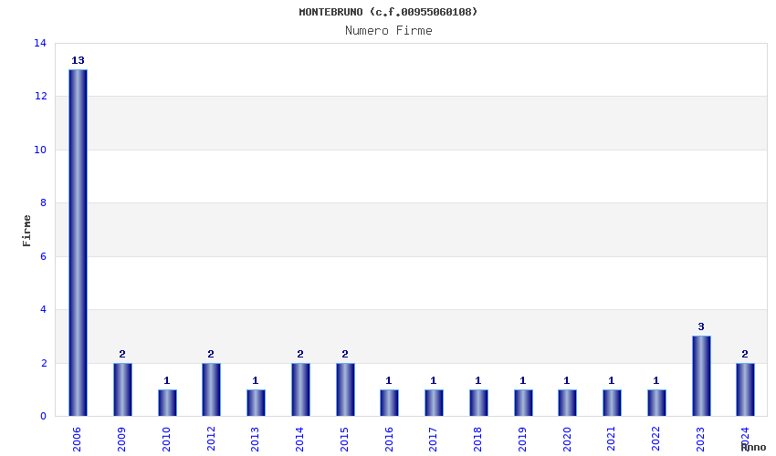 | Anno | Firme | Importi | Media | Naz. | Reg. | Prov. | Comu. |