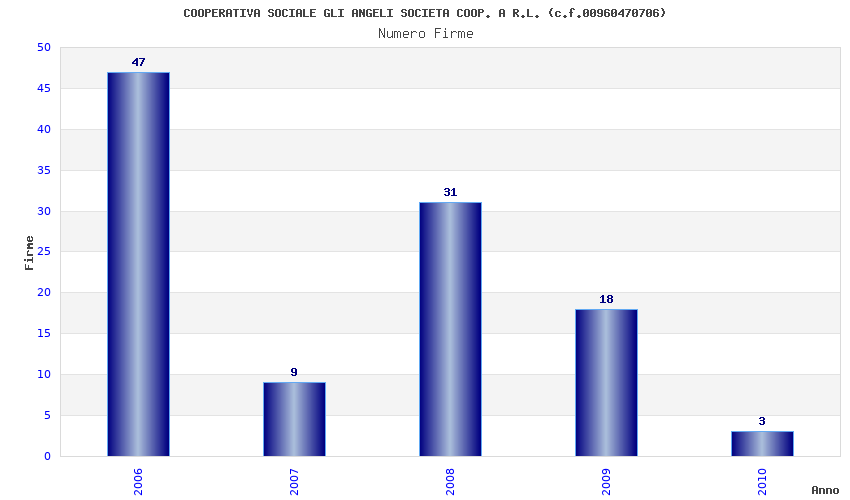 | Anno | Firme | Importi | Media | Naz. | Reg. | Prov. | Comu. |
