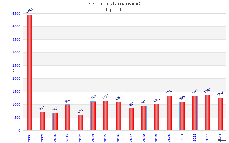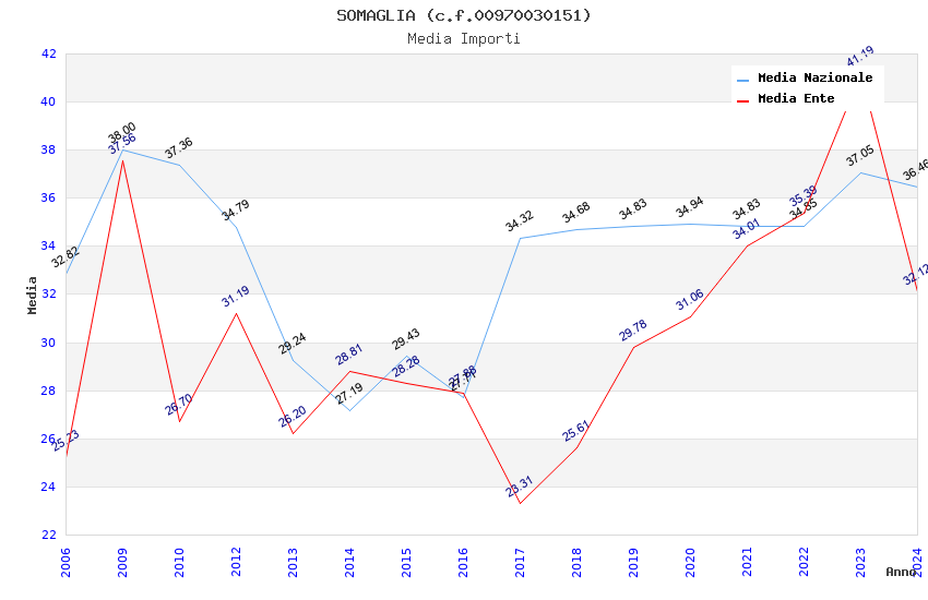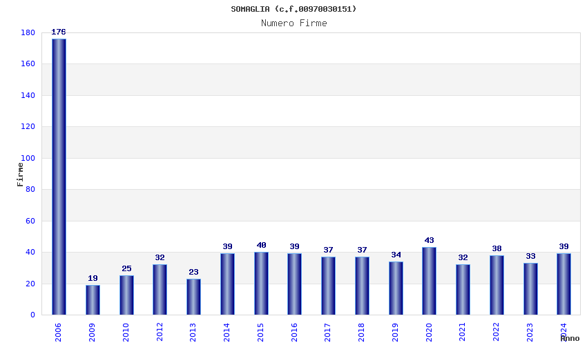 | Anno | Firme | Importi | Media | Naz. | Reg. | Prov. | Comu. |
