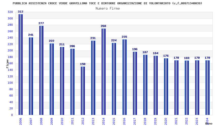 | Anno | Firme | Importi | Media | Naz. | Reg. | Prov. | Comu. |