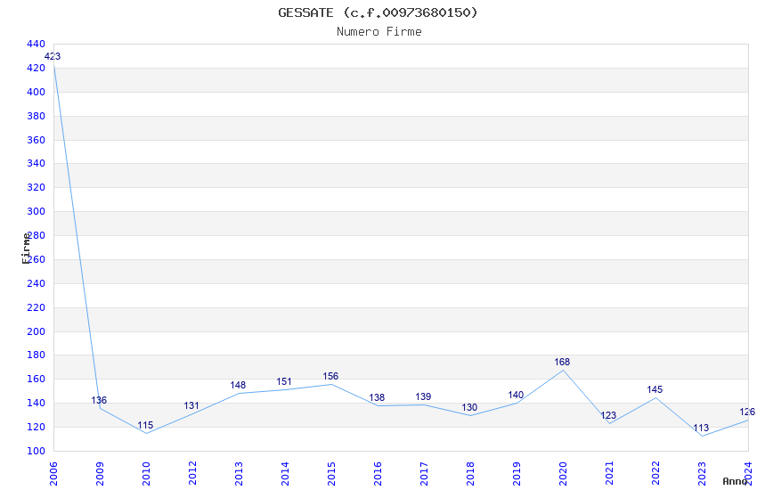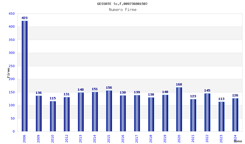 | Anno | Firme | Importi | Media | Naz. | Reg. | Prov. | Comu. |