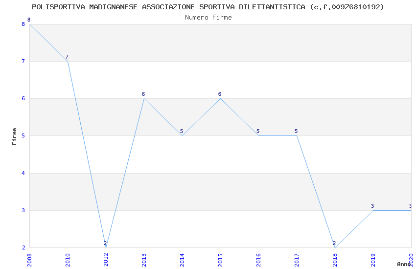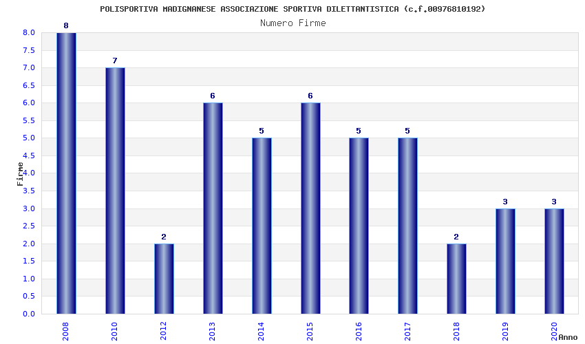 | Anno | Firme | Importi | Media | Naz. | Reg. | Prov. | Comu. |