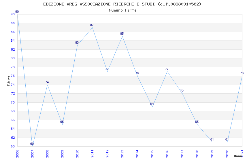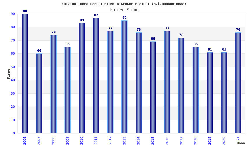 | Anno | Firme | Importi | Media | Naz. | Reg. | Prov. | Comu. |