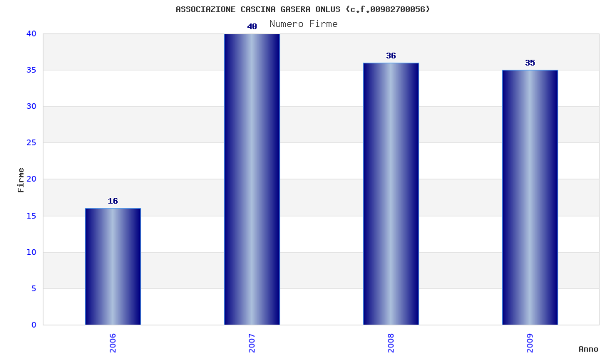 | Anno | Firme | Importi | Media | Naz. | Reg. | Prov. | Comu. |