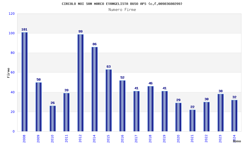 | 2008 | 101 | 2.615,89 | 25,90 | 12.871 | 1.129 | 26 | 16 |