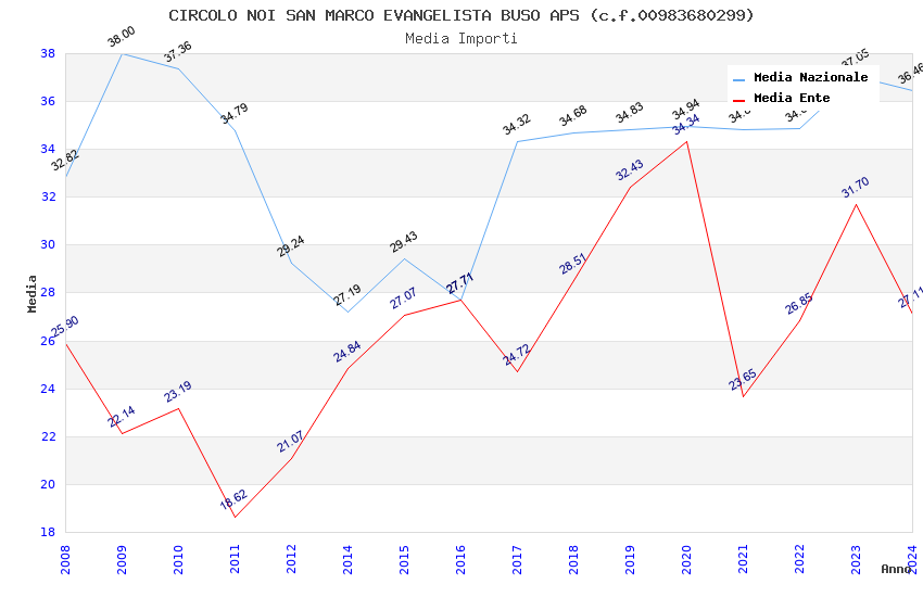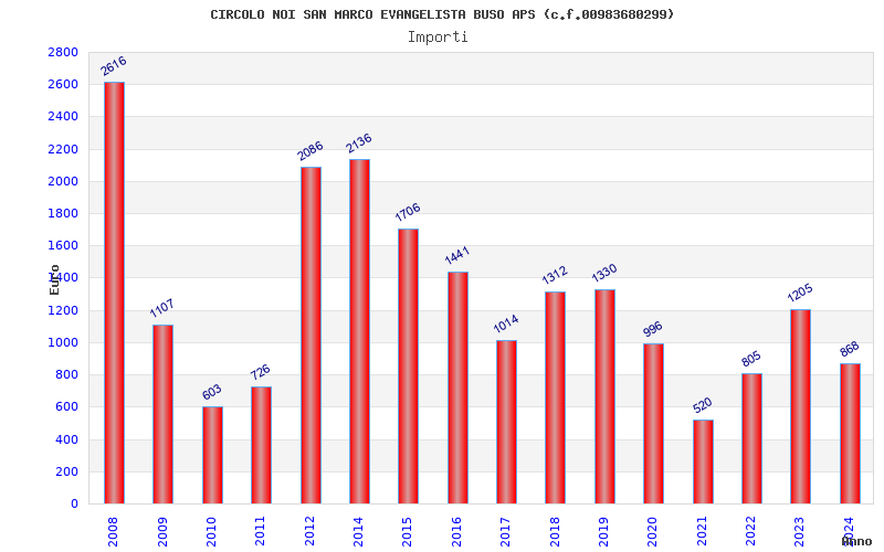 | Anno | Firme | Importi | Media | Naz. | Reg. | Prov. | Comu. |