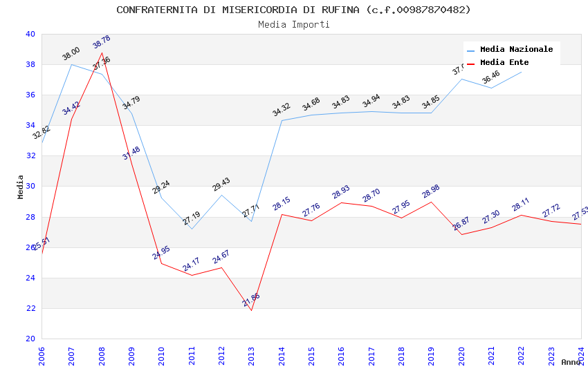 | Anno | Firme | Importi | Media | Naz. | Reg. | Prov. | Comu. |