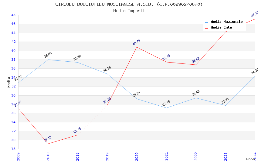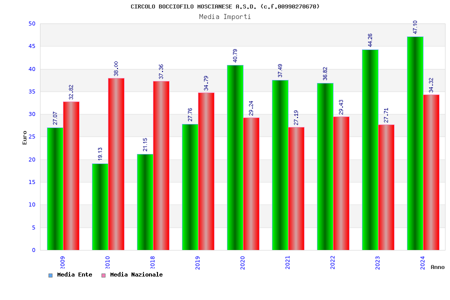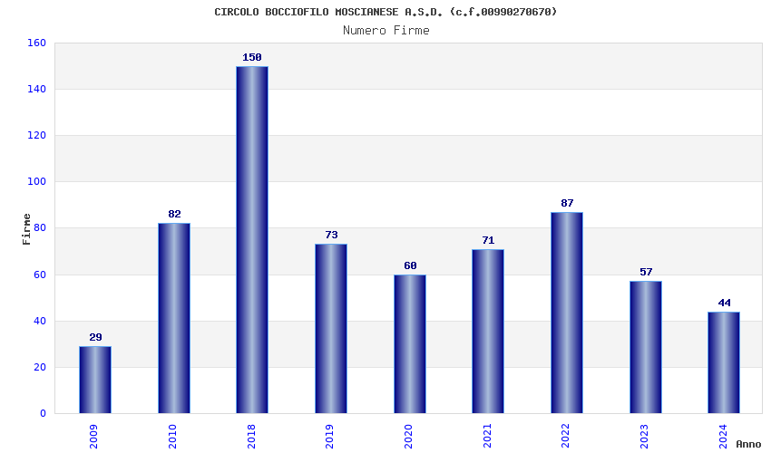 | Anno | Firme | Importi | Media | Naz. | Reg. | Prov. | Comu. |