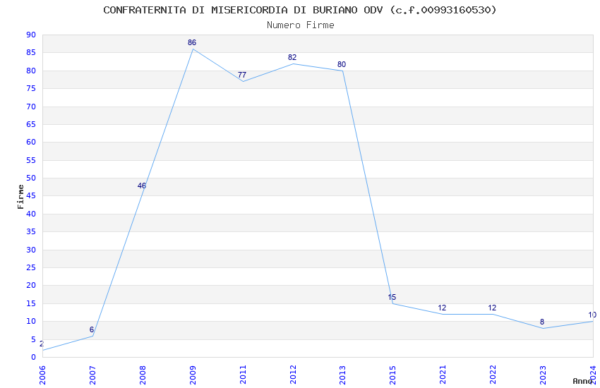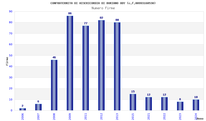 | Anno | Firme | Importi | Media | Naz. | Reg. | Prov. | Comu. |
