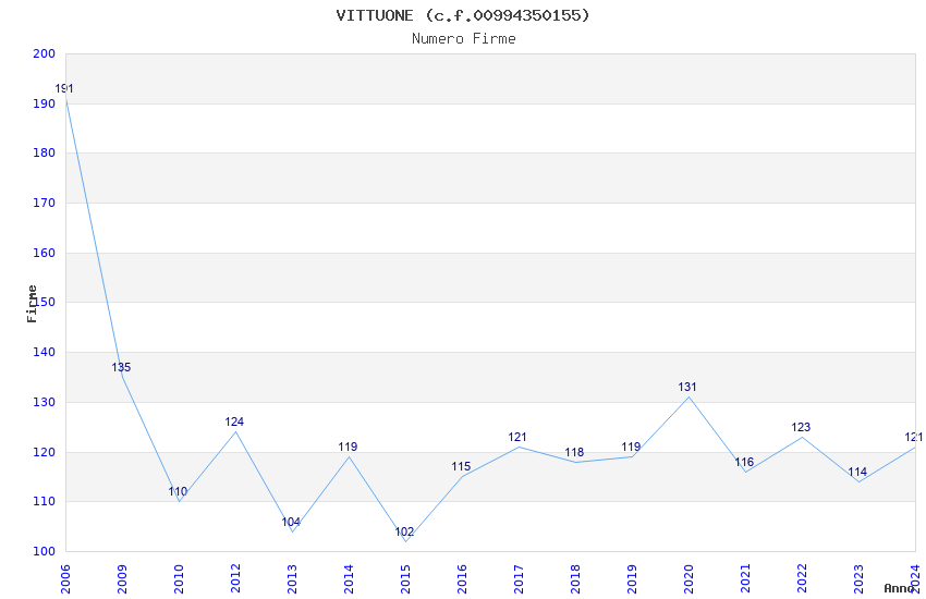 | 2017 | 121 | 3.682,69 | 30,44 | 14.701 | 3.405 | 1.317 | 3 |