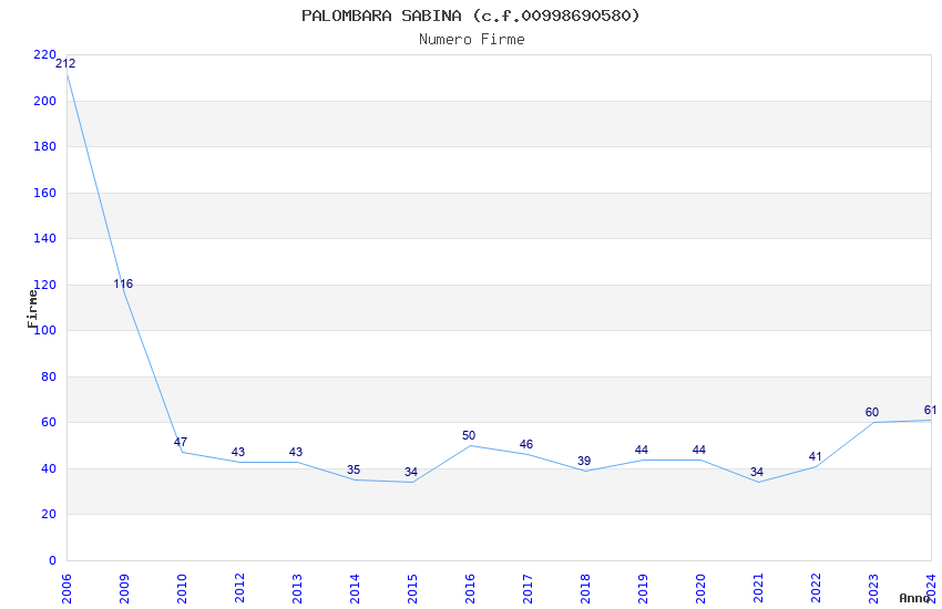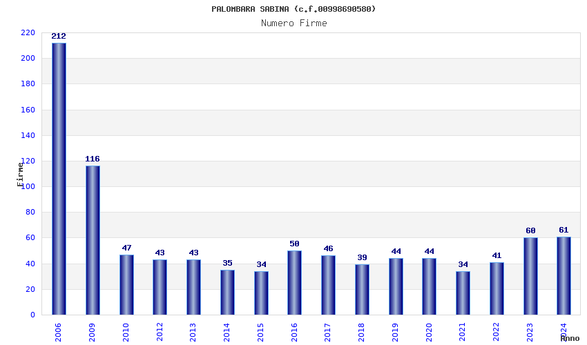 Anno Firme Importi Media Naz. Reg. Prov. Comu.