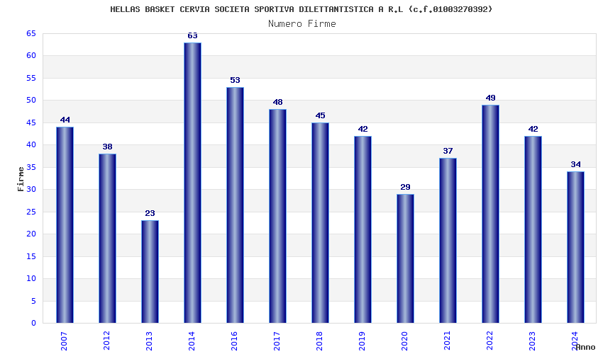 | Anno | Firme | Importi | Media | Naz. | Reg. | Prov. | Comu. |