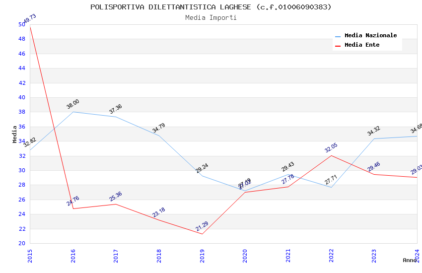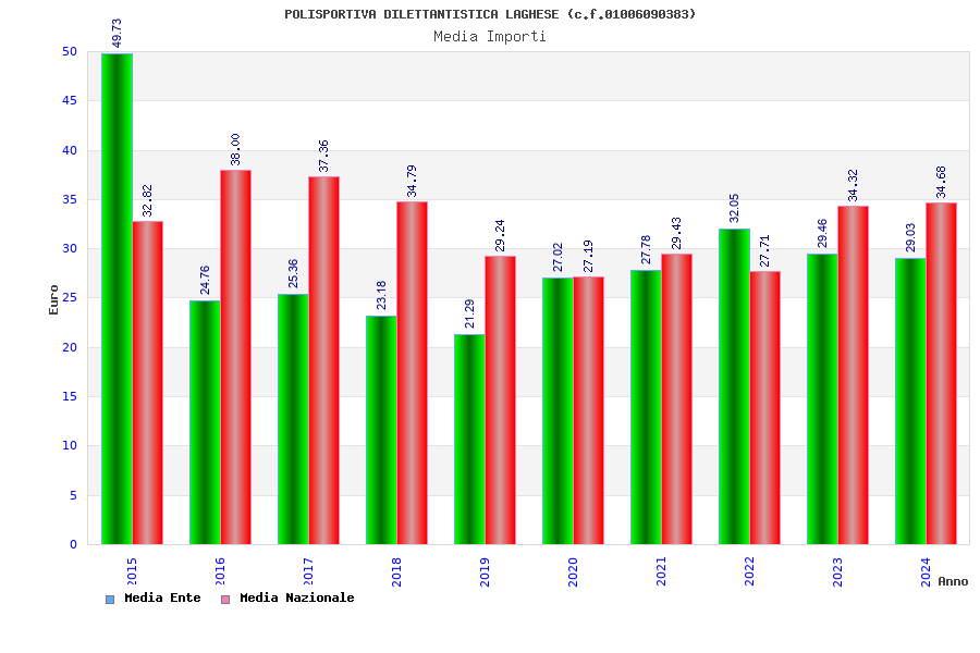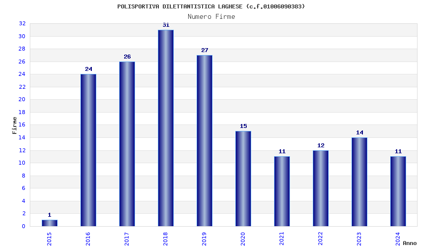 | Anno | Firme | Importi | Media | Naz. | Reg. | Prov. | Comu. |