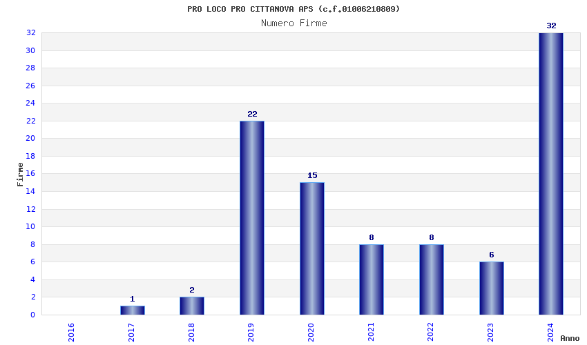 | Anno | Firme | Importi | Media | Naz. | Reg. | Prov. | Comu. |