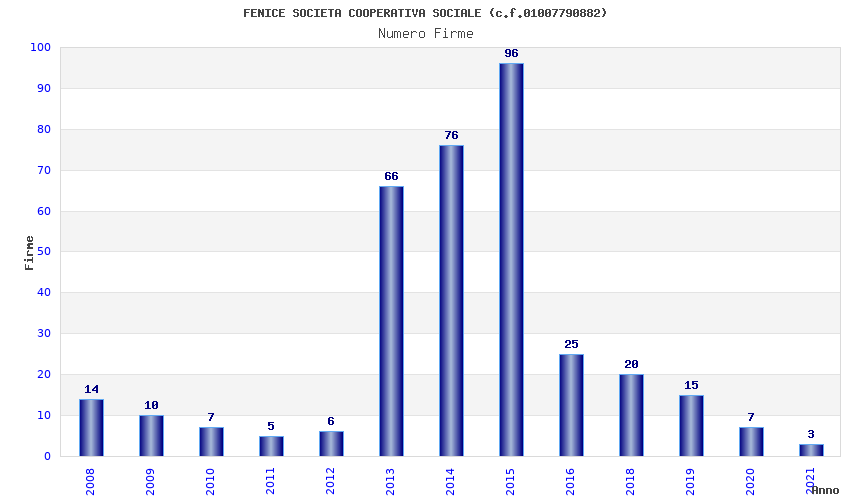 | Anno | Firme | Importi | Media | Naz. | Reg. | Prov. | Comu. |