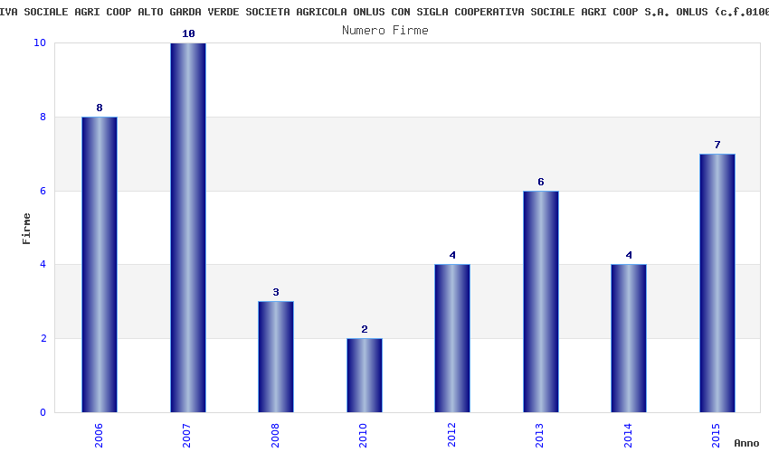 | Anno | Firme | Importi | Media | Naz. | Reg. | Prov. | Comu. |
