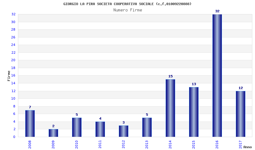 | Anno | Firme | Importi | Media | Naz. | Reg. | Prov. | Comu. |