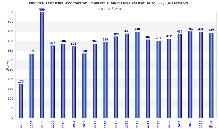 | 2008 | 550 | 13.100,46 | 23,82 | 3.351 | 236 | 28 | 1 |