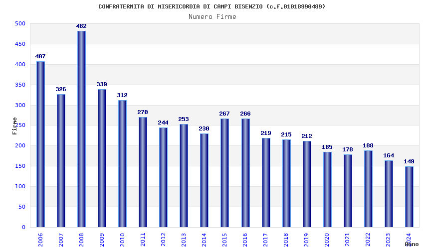 | Anno | Firme | Importi | Media | Naz. | Reg. | Prov. | Comu. |