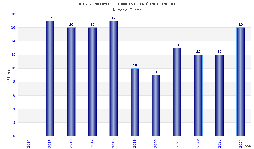 | 2017 | 16 | 617,09 | 38,57 | 41.317 | 1.171 | 128 | 5 |