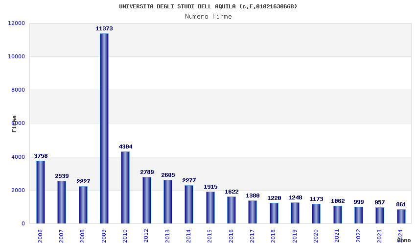 | Anno | Firme | Importi | Media | Naz. | Reg. | Prov. | Comu. |