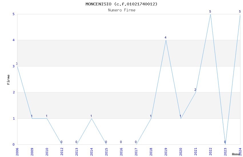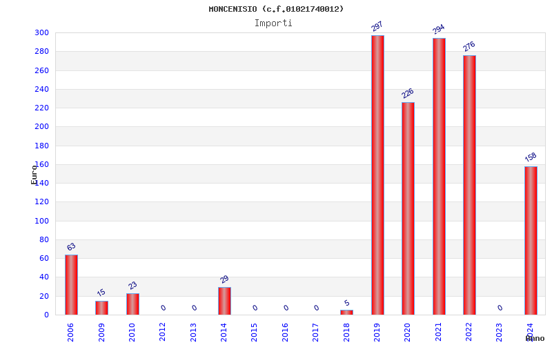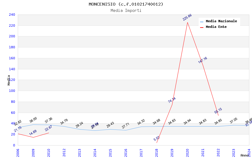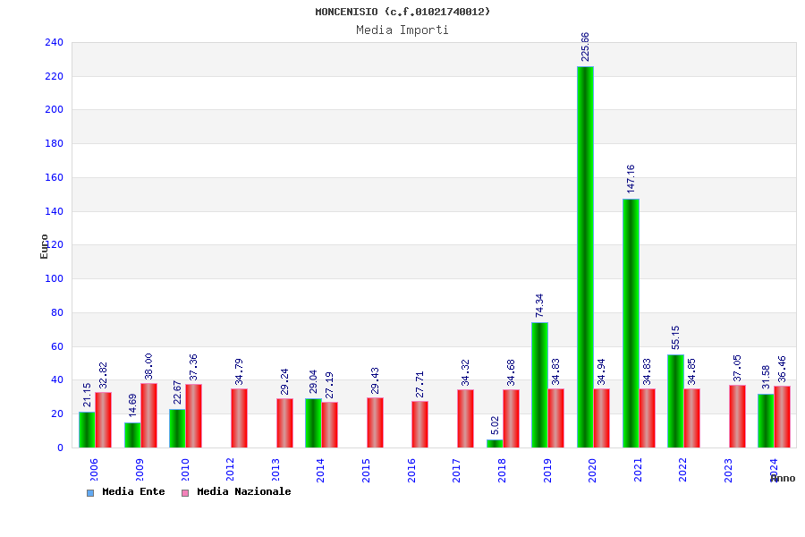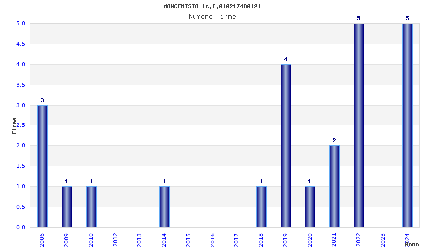 | Anno | Firme | Importi | Media | Naz. | Reg. | Prov. | Comu. |