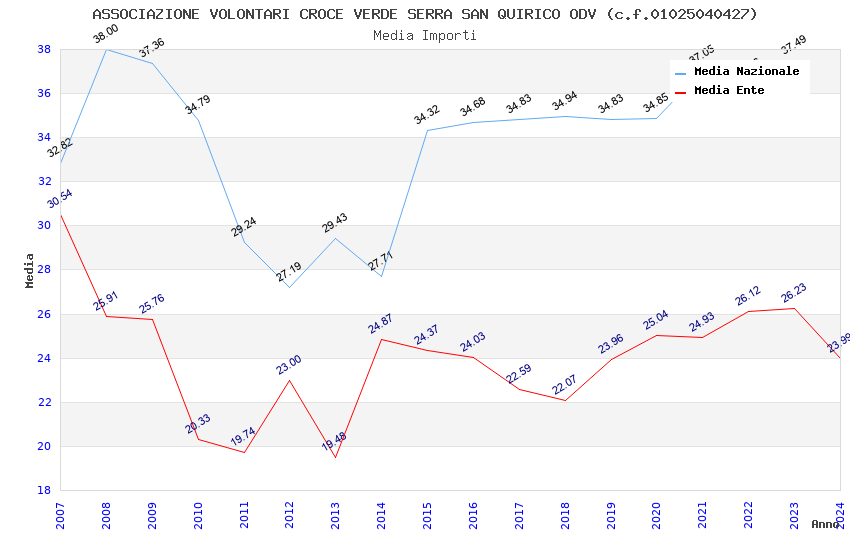| Anno | Firme | Importi | Media | Naz. | Reg. | Prov. | Comu. |