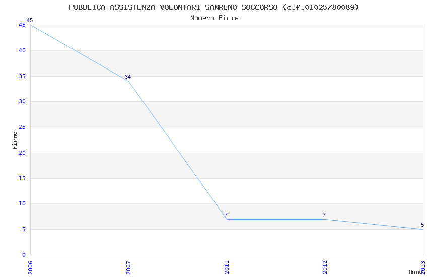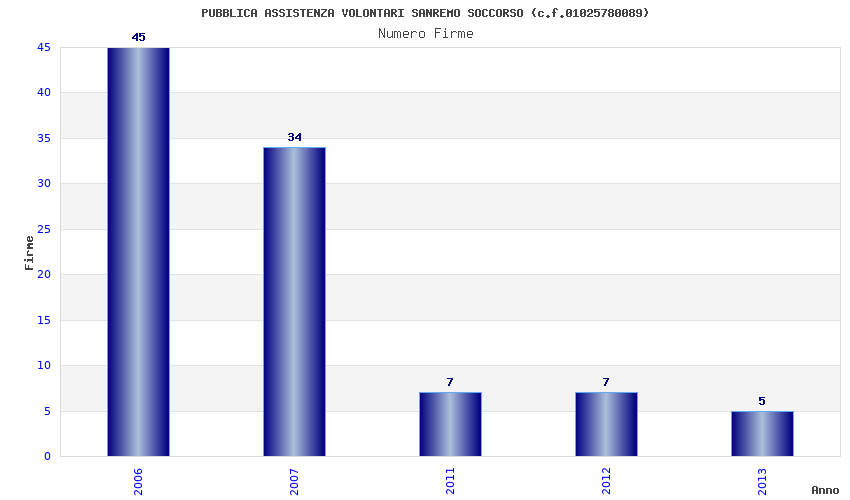 | Anno | Firme | Importi | Media | Naz. | Reg. | Prov. | Comu. |