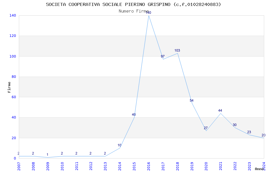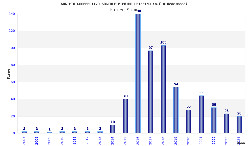 | 2016 | 140 | 2.312,82 | 16,52 | 20.732 | 1.236 | 70 | 8 |