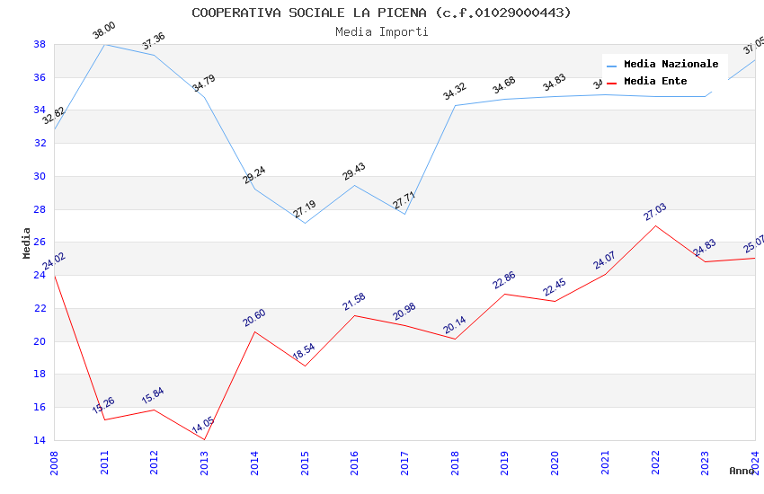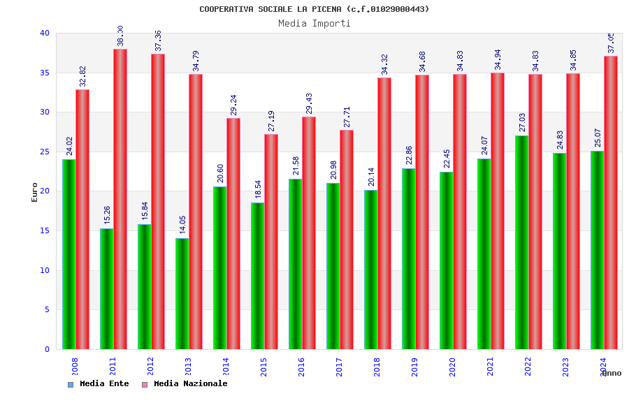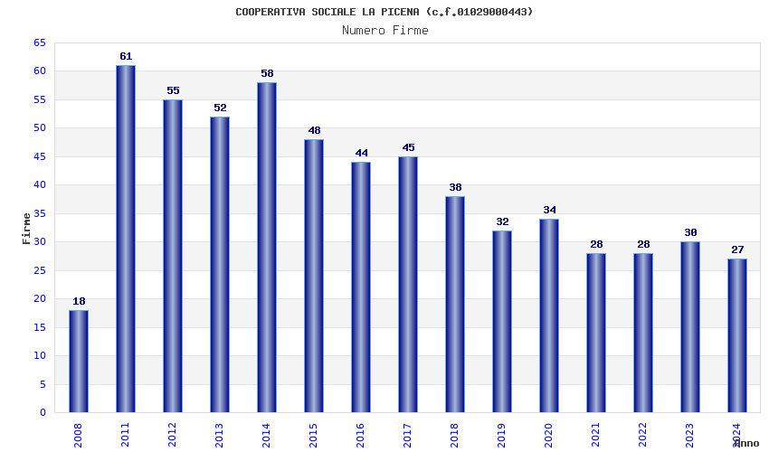 | Anno | Firme | Importi | Media | Naz. | Reg. | Prov. | Comu. |