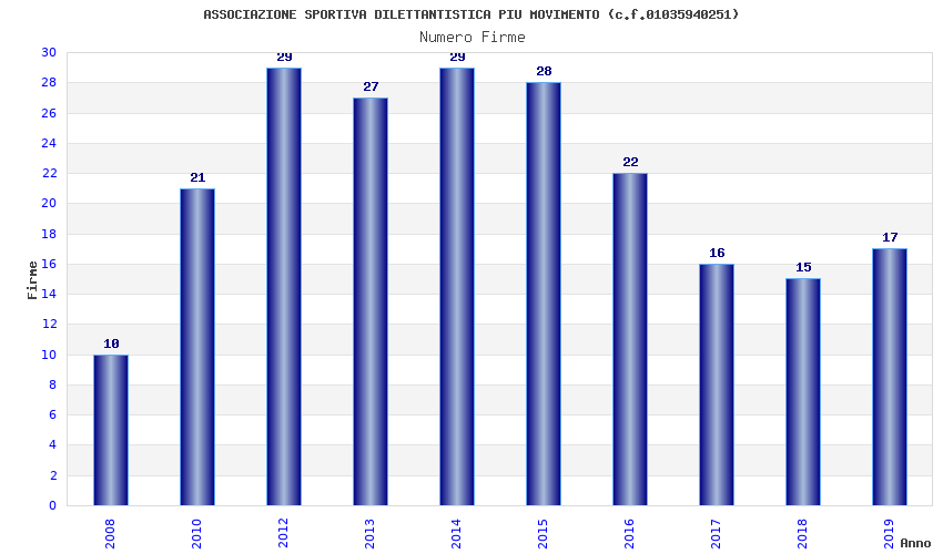 | Anno | Firme | Importi | Media | Naz. | Reg. | Prov. | Comu. |