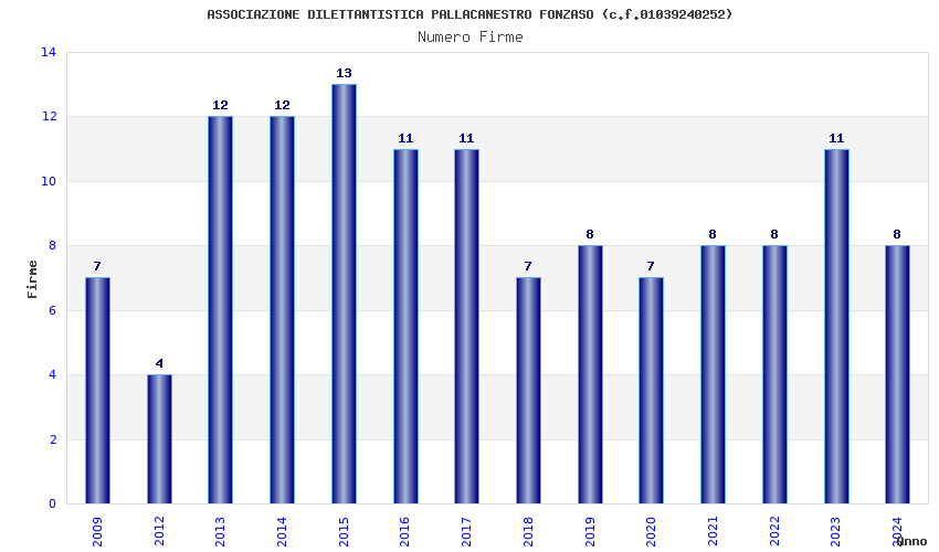 | Anno | Firme | Importi | Media | Naz. | Reg. | Prov. | Comu. |