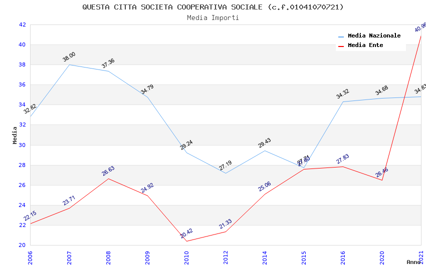 | Anno | Firme | Importi | Media | Naz. | Reg. | Prov. | Comu. |