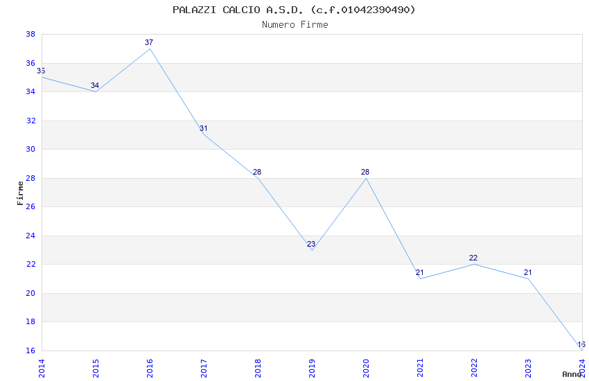| 2016 | 37 | 1.170,12 | 31,62 | 30.638 | 1.902 | 140 | 16 |