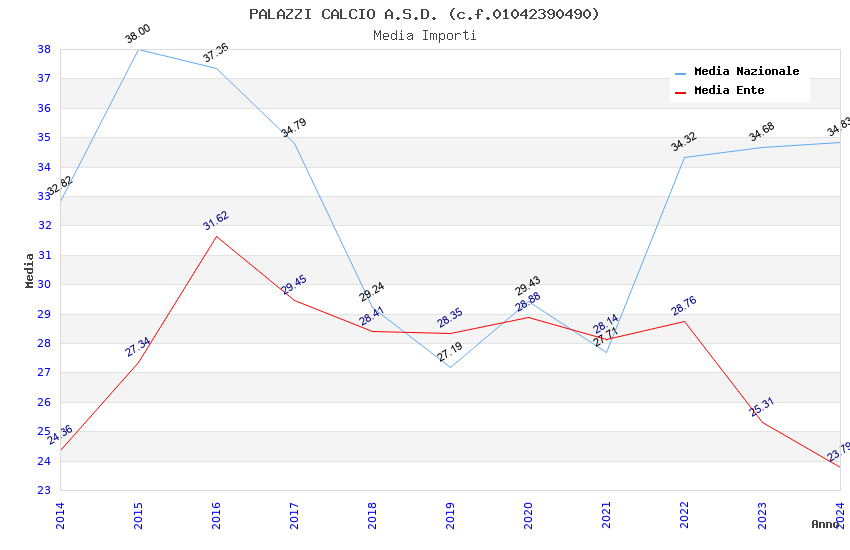 | Anno | Firme | Importi | Media | Naz. | Reg. | Prov. | Comu. |