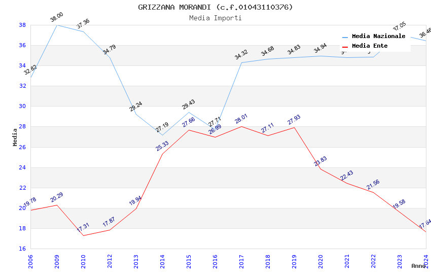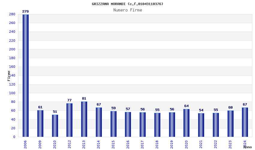 | Anno | Firme | Importi | Media | Naz. | Reg. | Prov. | Comu. |