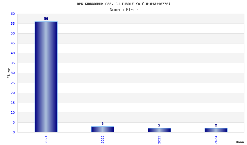 | Anno | Firme | Importi | Media | Naz. | Reg. | Prov. | Comu. |