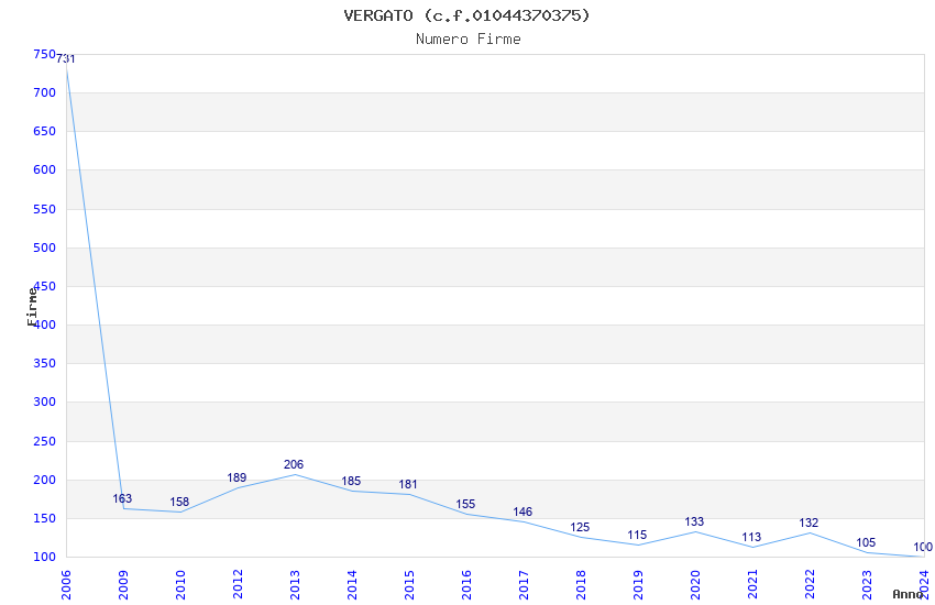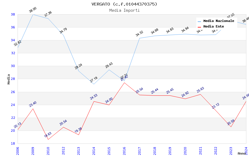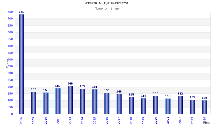 | Anno | Firme | Importi | Media | Naz. | Reg. | Prov. | Comu. |