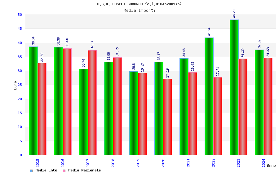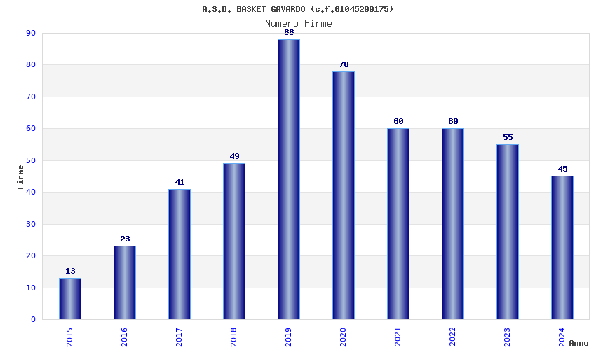 | Anno | Firme | Importi | Media | Naz. | Reg. | Prov. | Comu. |