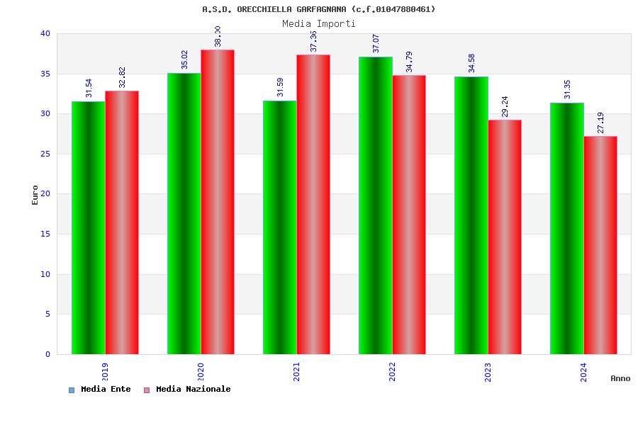 | Anno | Firme | Importi | Media | Naz. | Reg. | Prov. | Comu. |