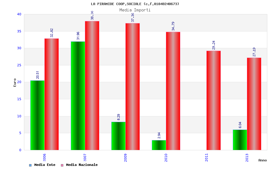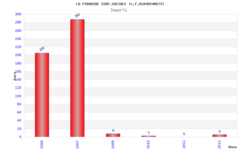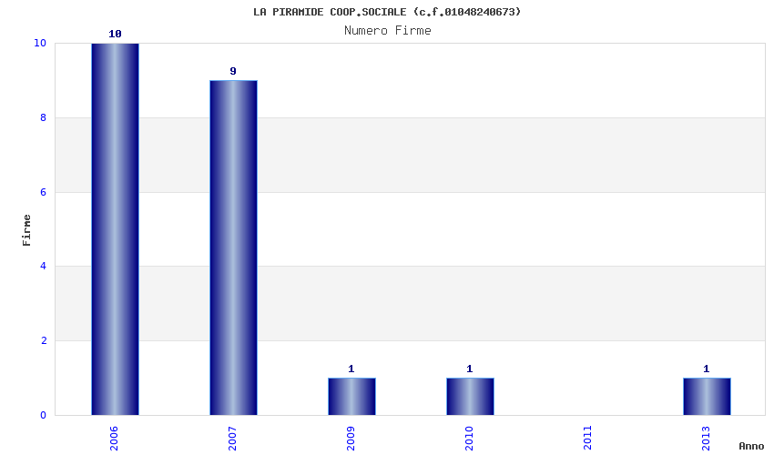| Anno | Firme | Importi | Media | Naz. | Reg. | Prov. | Comu. |