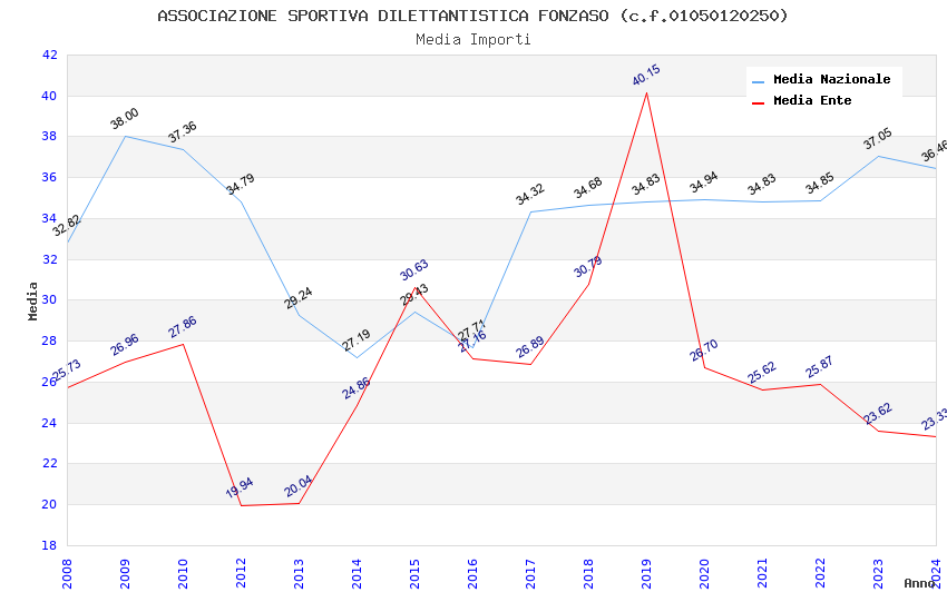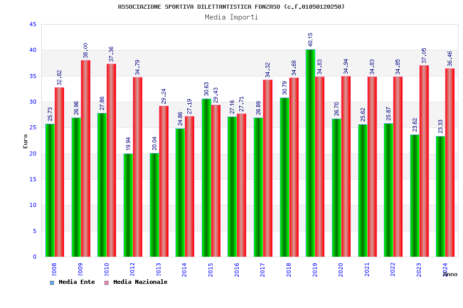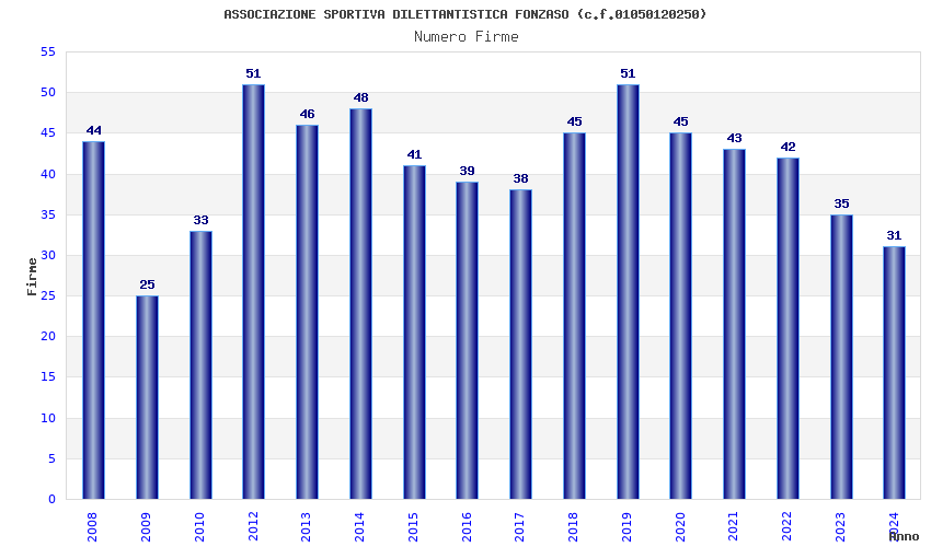 | Anno | Firme | Importi | Media | Naz. | Reg. | Prov. | Comu. |