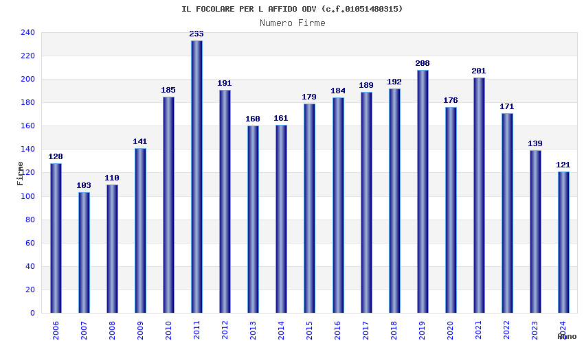 | Anno | Firme | Importi | Media | Naz. | Reg. | Prov. | Comu. |