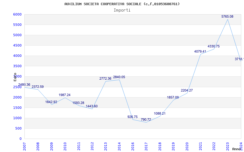 | Anno | Firme | Importi | Media | Naz. | Reg. | Prov. | Comu. |