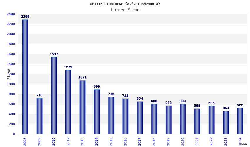 | Anno | Firme | Importi | Media | Naz. | Reg. | Prov. | Comu. |