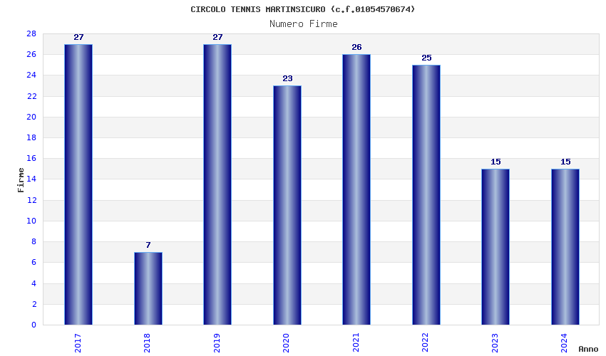 | Anno | Firme | Importi | Media | Naz. | Reg. | Prov. | Comu. |