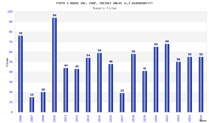 | Anno | Firme | Importi | Media | Naz. | Reg. | Prov. | Comu. |